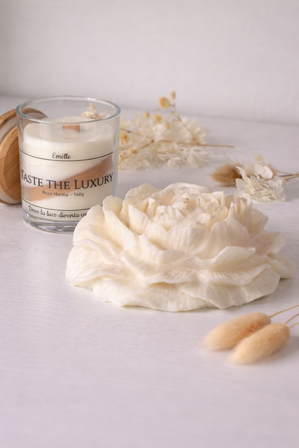 Utilizziamo esclusivamente cera di soia 100% naturale, biodegradabile e priva di paraffina o cera in gel. Rispetto alle candele industriali, le nostre garantiscono una combustione più pulita, non rilasciano fumi tossici e durano fino al 50% in più.